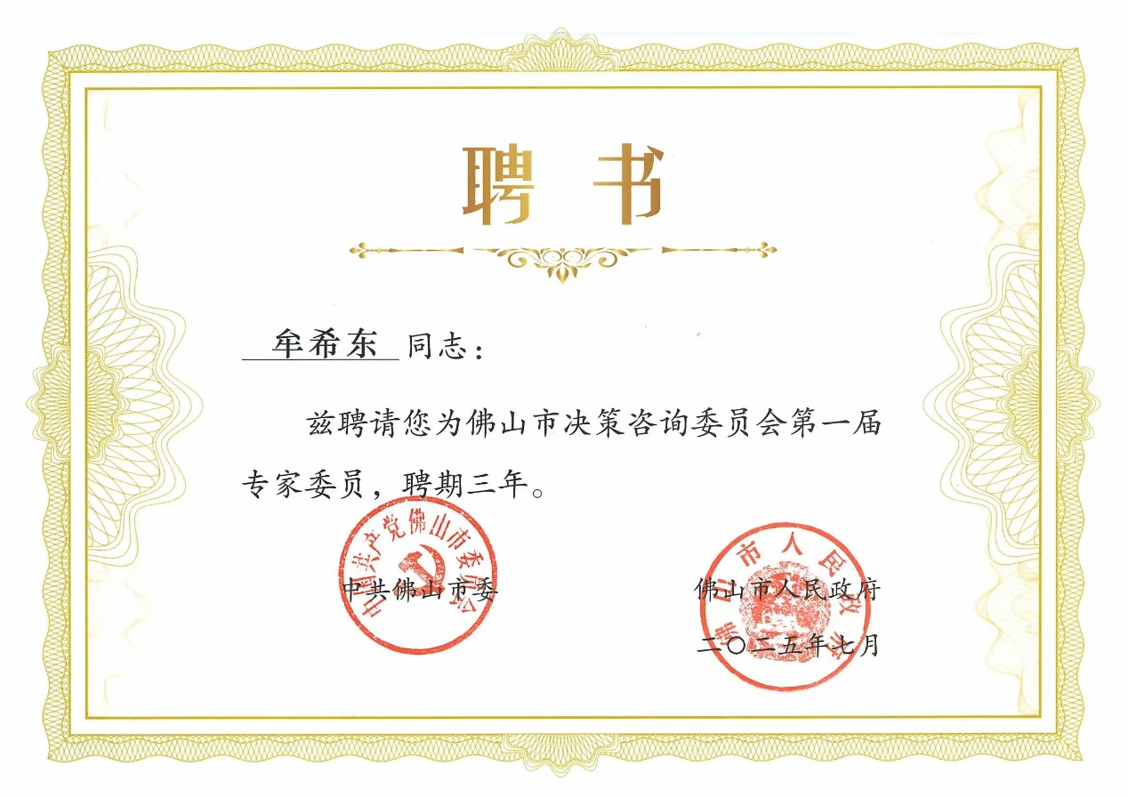 近日,中共佛山市委、佛山市人民政府印发《关于聘任毛艳华等116人为佛山市决策咨询委员会第一届专家委员的通知》(佛函〔2025〕12号),中国水产科学研究院珠江水产研究所牟希东研究员获为佛山市决策咨询委员会第一届专家委员。这是牟希东研究员继2024年获聘广州市人民政府第二届重大行政决策论证专家之后的又一殊荣。